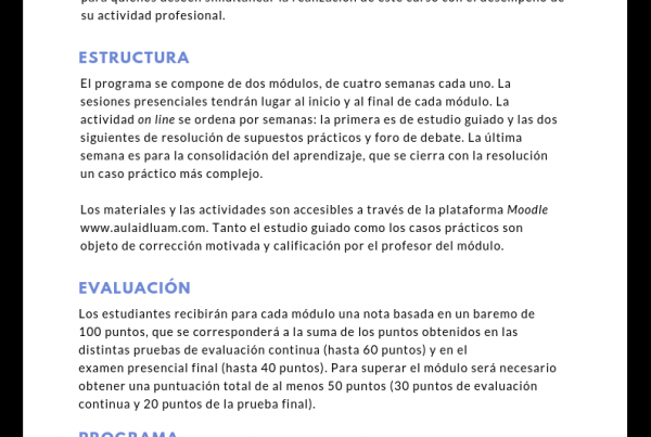 Cursos 22 octubre, 2018 Nuevo Curso Corto sobre Derecho Urbanístico El curso "Derecho Urbanístico" se imparte como curso corto de la UAM en el marco… IDL-UAM Love0