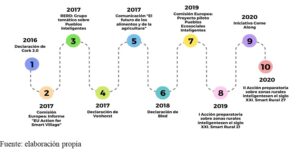 Figura 1. Cronología sobre la evolución del concepto de pueblos inteligentes y políticas de la UE relacionadas con los mismos: